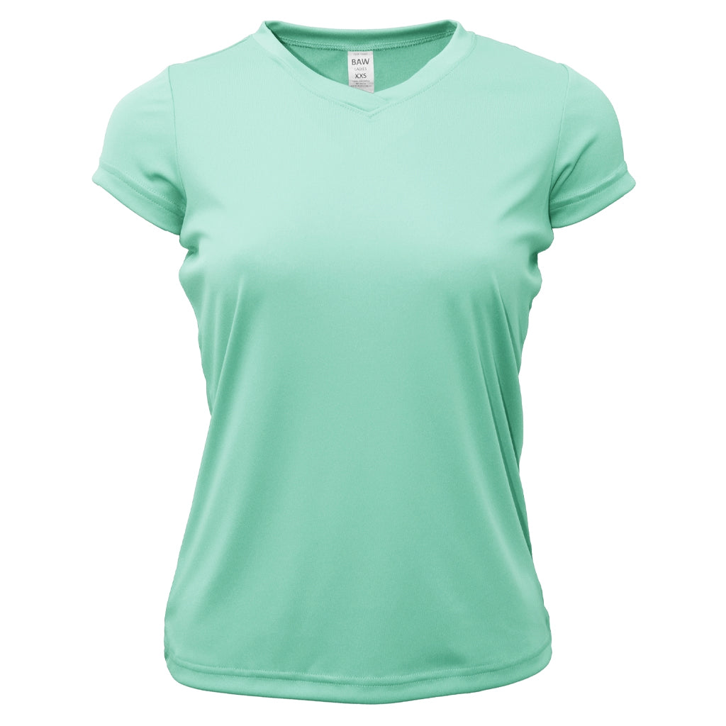 No one could accuse you of not selecting the right color of women's T-shirt for your company sponsored promotion! The BAW Women's Sea Foam Xtreme Tek T-Shirt comes in a variety different shades. Just imagine your custom logo on the front of each one. Your promotion could be the gold at the end of the proverbial rainbow. This ladies' tee is available in sizes 2XS to 3X, and the material is so comfortable and breathable that recipients will wear it every chance they get. This is a tee that will not shrink and also offers UV protection. Whether you're having an anniversary celebration or gift with purchase, you just can't go wrong!Corresponding Men's Style: BAW Men's Sea Foam Xtreme Tek T-Shirt