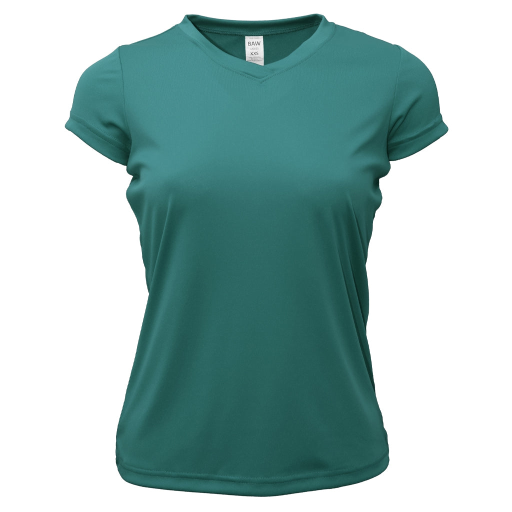 No one could accuse you of not selecting the right color of women's T-shirt for your company sponsored promotion! The BAW Women's Teal Xtreme Tek T-Shirt comes in a variety different shades. Just imagine your custom logo on the front of each one. Your promotion could be the gold at the end of the proverbial rainbow. This ladies' tee is available in sizes 2XS to 3X, and the material is so comfortable and breathable that recipients will wear it every chance they get. This is a tee that will not shrink and also offers UV protection. Whether you're having an anniversary celebration or gift with purchase, you just can't go wrong!Corresponding Men's Style: BAW Men's Teal Xtreme Tek T-Shirt