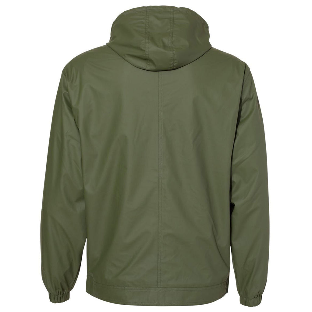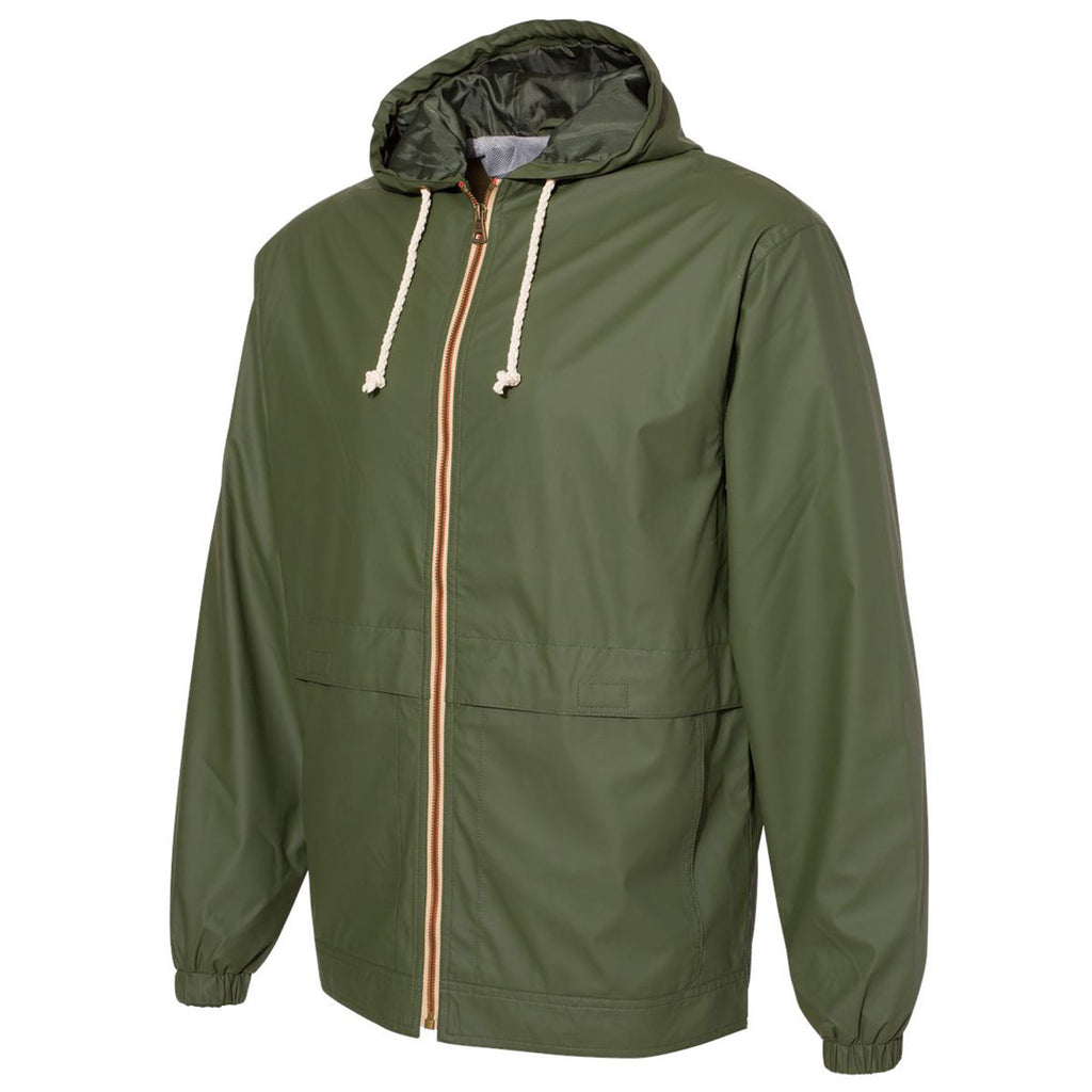 Take vintage to new heights with embroidery added to the Weatherproof Men's Bronze Green Vintage Hooded Rain Jacket. A throw back to traditional hooded rain coats this lightweight 100% water resistant polyurethane jacket is fully lined for a bit of warmth and has a full zip front closure. Add your company logo or corporate embroidery to this piece as an option for those who have to work in inclement weather or as general employee apparel. Available in a range of size and color options, this rain jacket would make a wonderful employee gift that is also highly useful. Using your design, create a line that can be shared in a shop or store as needed.Highlights