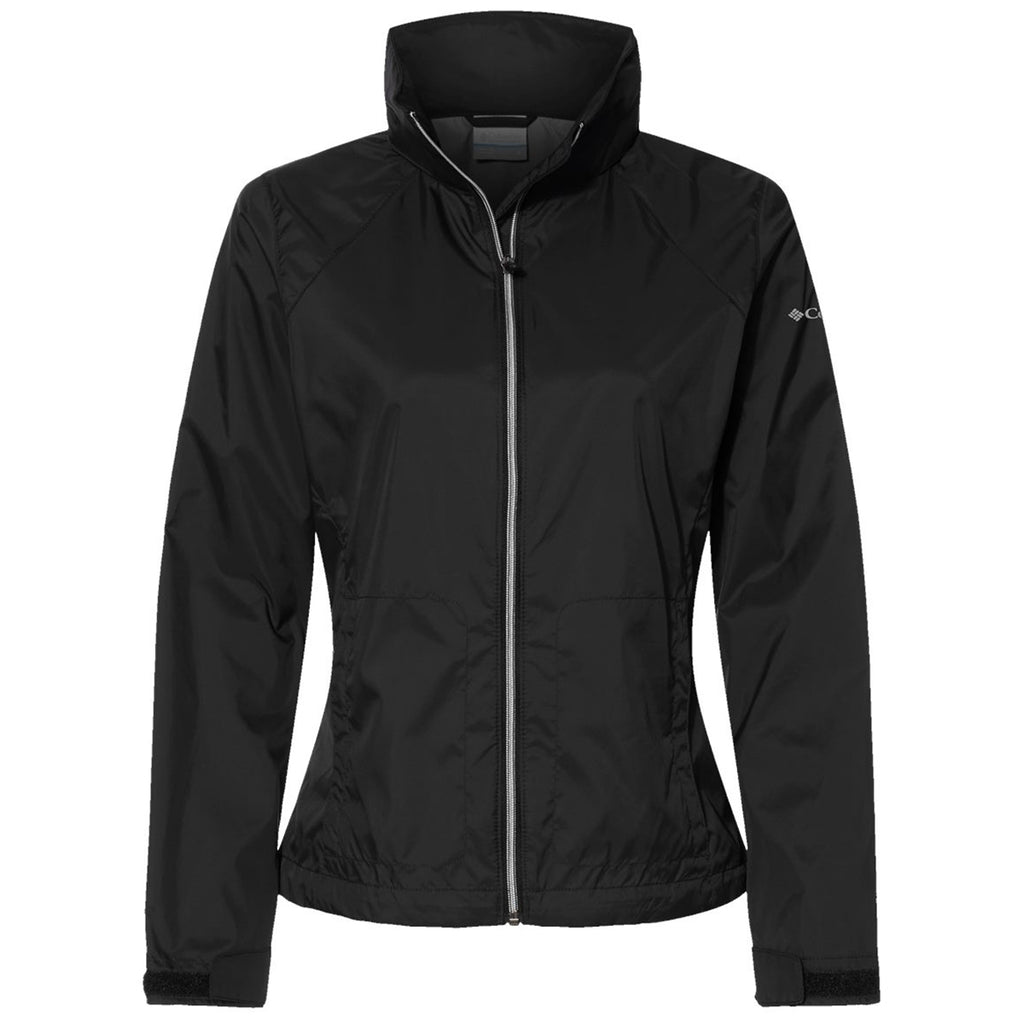 Choose a custom logo for the Columbia Women's Black Switchback III Jacket. The easy-to-wear nylon jacket has an attached, adjustable, stow-away hood, zippered hand pockets, and adjustable cuffs, making it ideal for running errands, enjoying a day outdoors, or making the morning commute. Place an order right away to give these as gifts.This product cannot ship outside of the United States.