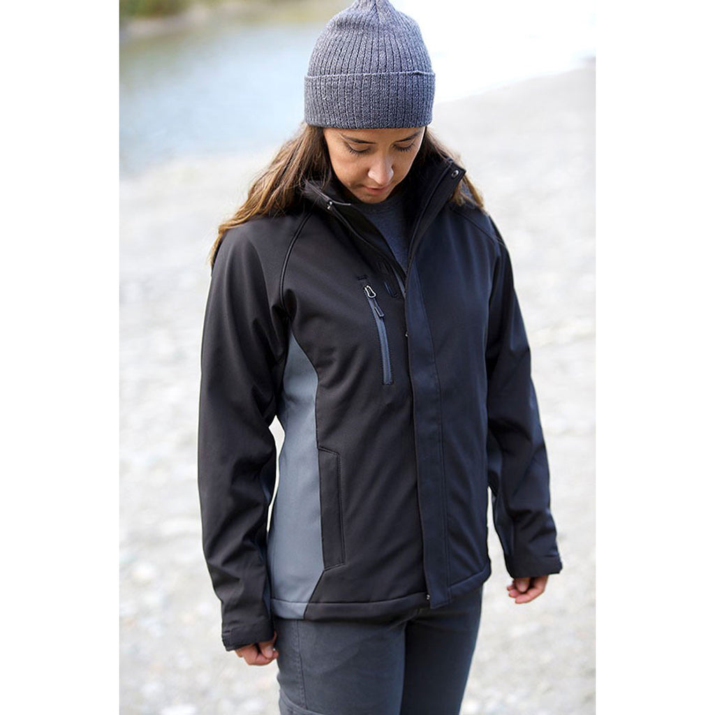Take control of winter weather by wearing the corporate logoed Landway Women's Heather Deep Blue/Black Gravity 3-in-1 System Soft Shell. The incredibly high waterproof rating means you remain comfortably dry during any major winter weather event. Partially constructed with elastane, the soft shell increases your mobility to maintain comfort when going to and from the office. One-hundred percent polyester lines the interior to produce another layer of warmth. Attach a custom logo for promoting your company in the field and out on business trips. Your employees will be thankful to have an embroidered jacket to keep them warm on the colder days of the year.Corresponding Men's Style: Landway Men's Heather Deep Blue/Black Gravity 3-in-1 System Soft Shell