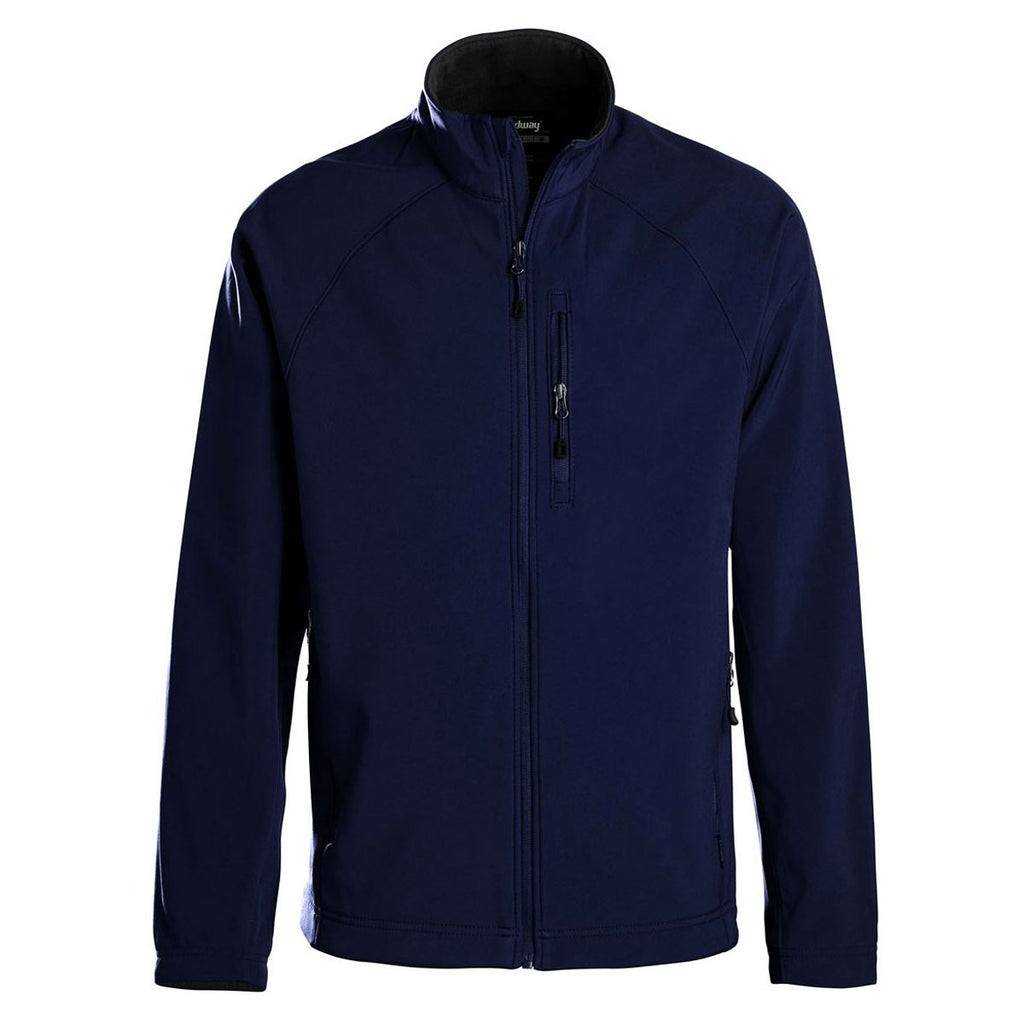 Wear the corporate logoed Landway Men's Navy/Charcoal Matrix Soft Shell Jacket every time you need cold weather protection. Thick microfleece acts as an additional layer that traps body heat to ensure optimal cold weather comfort. The jacket works well for professionals who enjoy active lifestyles. Three layers of polyester ensure the jacket does not rip or tear, even if you participate in outdoor activities. Raglan sleeves create more arm movement flexibility to help you deal with demanding outdoor home improvement projects. Add a custom logo to generate buzz for your company. Your employees will be happy to receive this soft shell with your embroidered logo.Corresponding Women's Style: Landway Women's Navy Matrix Soft Shell Jacket