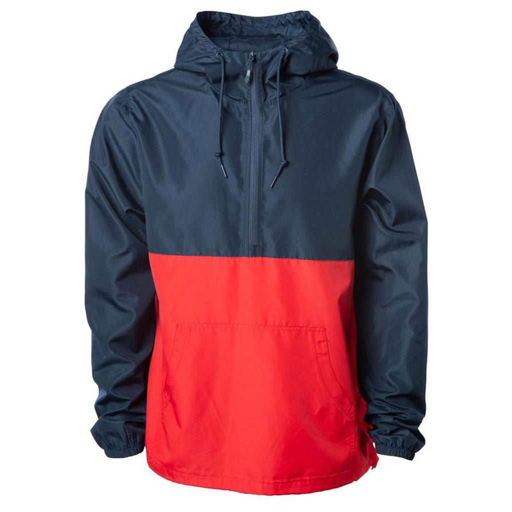 Added embroidery amplifies the Independent Trading Co. Unisex Classic Navy/Red Lightweight Windbreaker Pullover. Made of 100% polyester fabric with interior water resistant coating, this windbreaker is the choice for those who enjoy a good workout each day. Add a company logo to these windbreakers to promote a company and products at a trade show, event, or supply store. Your custom design will look great on one of the many color options with tearaway label, welt pockets, a hood, and scuba neck for the best protection against the wind and rain. Ideal as part of warm-up gear for an entire team, this windbreaker will not let you down in the athleisure apparel area.Highlights