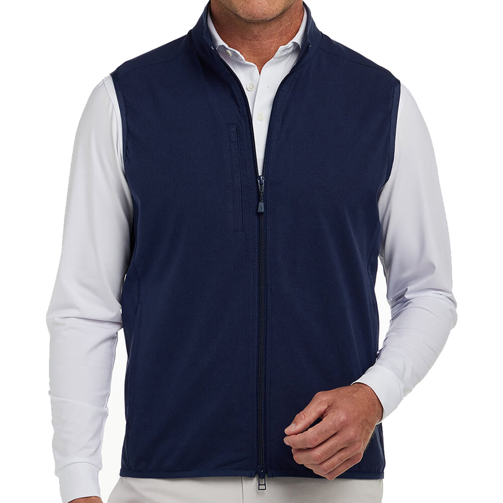 Holderness & Bourne Men’s Navy The Ventura Vest with a custom logo is the most breathable vest style available. Engineered for warmer weather, this vest is stylish and functional. The hidden zippered chest and side pockets offer utility as you hit the back nine, the clubhouse, or just practice on the greens. Great as a gift for golfers in your life.