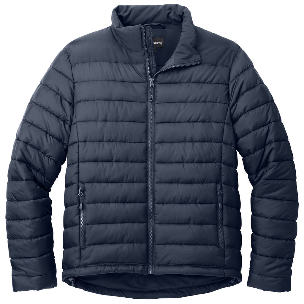 Add a custom logo to the Port Authority Men's Dress Blue Navy Horizon Puffy Jacket for a fun winter look that will turn heads. The water-resistant finish on the horizontal baffles keeps you dry as you ski, hike, camp, or fish. Choose this puffy jacket for the style and wear it for functionality. Place an order today.Highlights