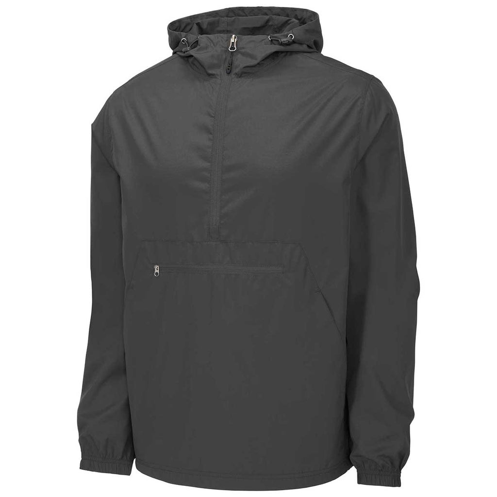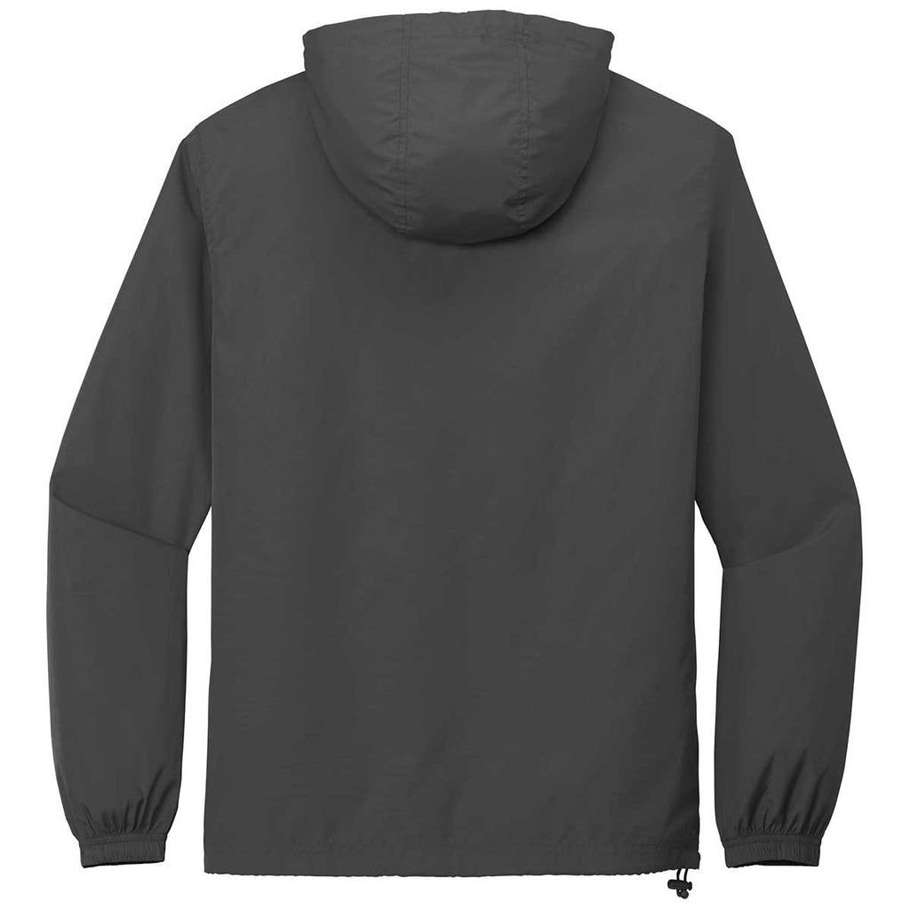 Stay protected in a custom embroidered Sport-Tek Men's Graphite Grey Packable Anorak. This weather fighting essential is great when Mother Nature is unpredictable. Easily folds into its own front pocket so it can be stored in the car or a duffle as you head out to face the day. Made of 100% polyester on the shell, this jacket can carry your company logo with pride, making it an ideal employee gift. The three panel hood with drawstring and toggles mean you are prepared if the weather turns while participating in or watching a team event. A front pouch pocket and the pocket in which the jacket folds into keeps items safe and secure as you enjoy a commute to work or a day hanging with friends.Highlights