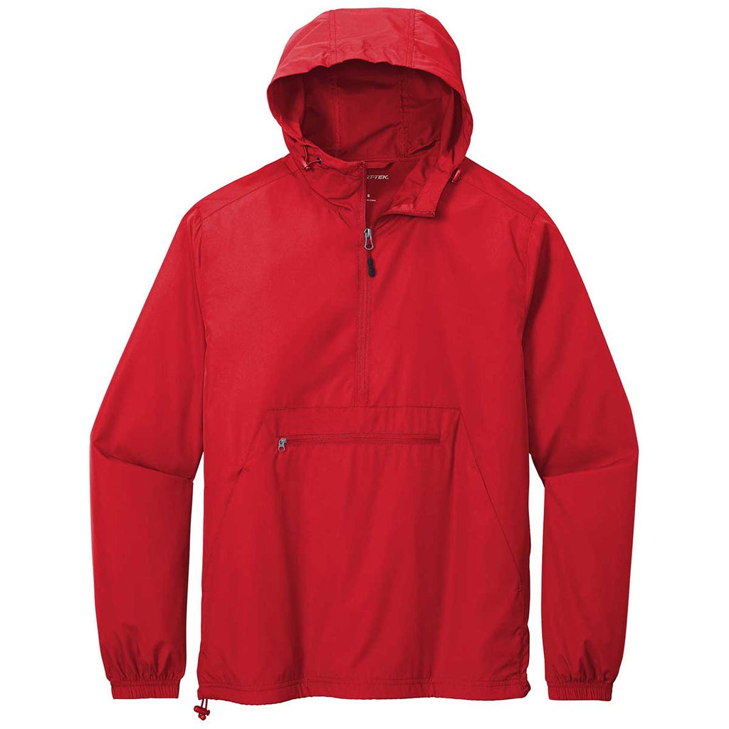 Stay protected in a custom embroidered Sport-Tek Men's True Red Packable Anorak. This weather fighting essential is great when Mother Nature is unpredictable. Easily folds into its own front pocket so it can be stored in the car or a duffle as you head out to face the day. Made of 100% polyester on the shell, this jacket can carry your company logo with pride, making it an ideal employee gift. The three panel hood with drawstring and toggles mean you are prepared if the weather turns while participating in or watching a team event. A front pouch pocket and the pocket in which the jacket folds into keeps items safe and secure as you enjoy a commute to work or a day hanging with friends.Highlights