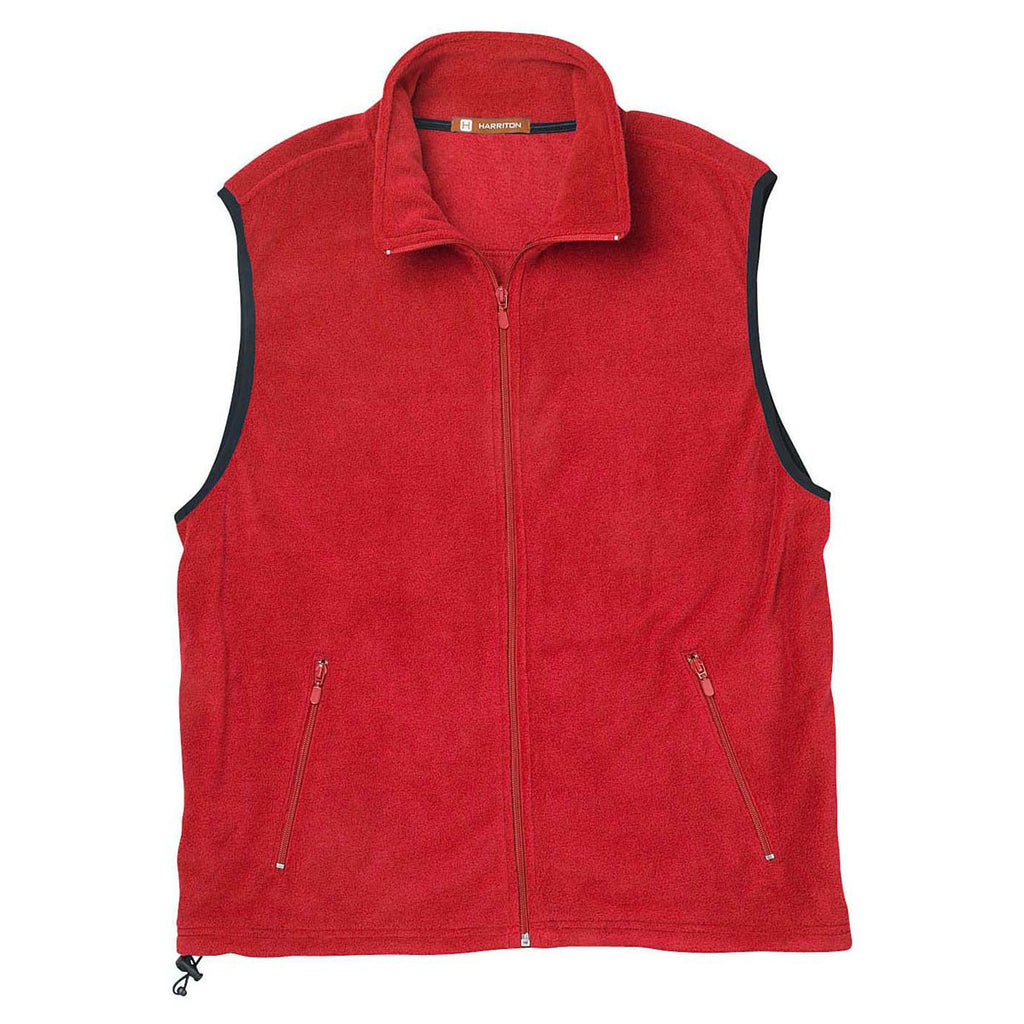 The Harriton Men's Red 8 oz. Fleece Vest features breathable fleece that ensures you remain comfortable all day long working outdoors. Rugged polyester fleece contains a non-pill finish that keeps the stylish vest on your back for years to come. Binding on the arm openings secures the vest to your shoulders, without restricting your movement outdoors. Front zippered pockets store your cell phone to keep you in touch with colleagues. The bottom hem includes a draw cord and toggles that enhance both the style and functionality of the versatile vest. Add your corporate logo and watch interest in your company soar.Highlights