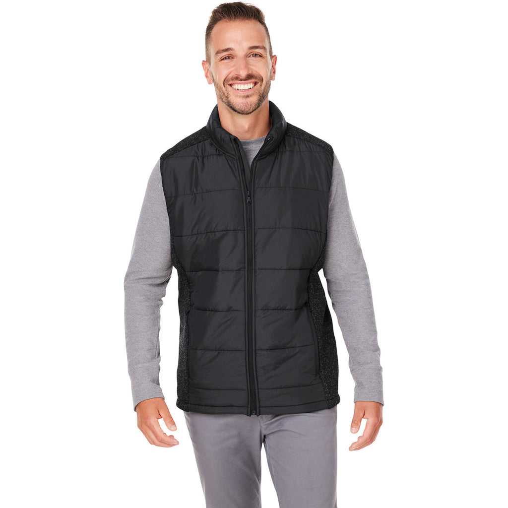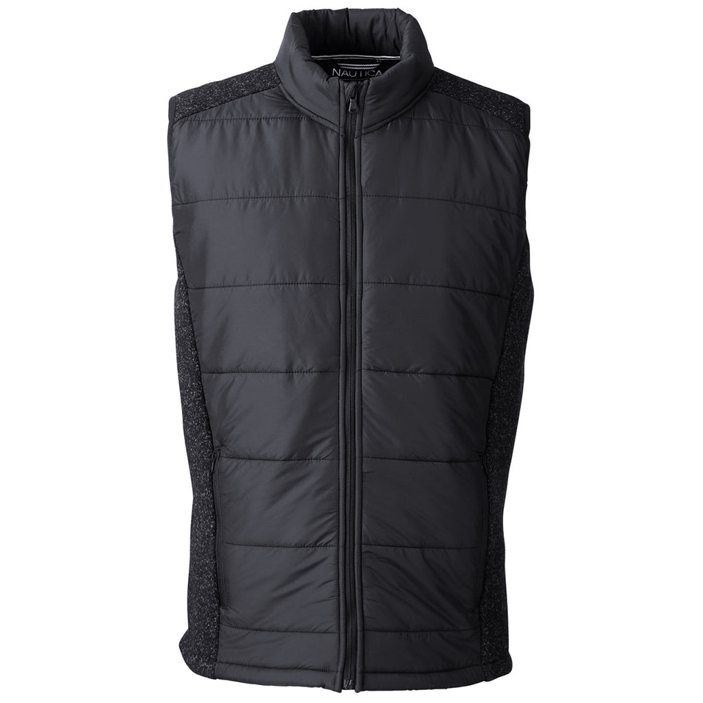 Nautica Men's Black/Black Heather Harbor Puffer Vest with custom logo is a fashion forward way to stay warm and cozy. The polyester vest is water resistant and offers heat-retaining properties to keep you as comfortable as possible all day. Easy to layer over a long-sleeve tee or sweater, this is a true must have for those who enjoy the outdoors. Place an order today.