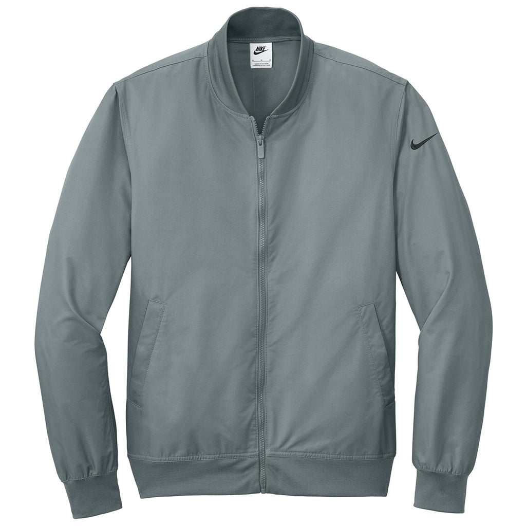 Nike Men's Cool Grey Bomber Jacket with a corporate logo is a classic for a reason. This bomber can be worn almost anywhere to complete a look while showing off your brand. The rib knit collar and cuffs with a dyed-to-match zipper maintain the classic bomber style. Great for commuting, coaching, and general wear.This product cannot ship outside of the United States.