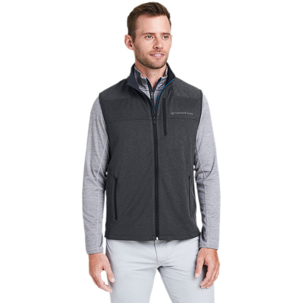 Vineyard Vines Men's Jet Black On-The-Go Shep Vest with a company logo is a simple and versatile way to help your employees look their best. This full zip vest is moisture-wicking with four-way stretch fabric and both side and chest pockets. The ideal option for those that greet customers or have to work in customer homes, these vests are easy to wear and enjoy. Place an order today.
