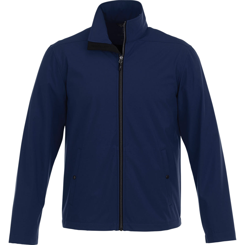 When it comes to custom logoed outwear in capricious in-between months, you're going to want to be focusing on lightweight, durable and waterproof materials that can handle any climate scenario. With that in mind, we've picked out Elevate Men's Vintage Navy Karmine Softshell Jacket that will carry the wearer through the transitions between seasons and beyond in comfort, protection, and style. It offers a distinct branding opportunity inside the back yoke. It goes with anything and is perfect for the office or a stroll around town. Make it uniquely yours by customizing with logo, name or message of your brand or company.Corresponding Women's Style: Elevate Women's Vintage Navy Karmine Softshell Jacket