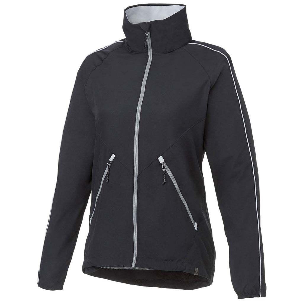 Create a custom look with the Elevate Women's Black/Silver Rincon Eco Packable Jacket with embroidery to match your taste and design. The wind and water-resistant jacket is made of partially recycled materials to help the environment while keeping you looking great. Great for hiking, biking, and enjoying the outdoors, this jacket can also carry your company logo to use as employee apparel. The front zip pockets keep small items safe and the stow away hood keeps you protected when nature strikes. Best of all, when you are done wearing this jacket, stow it away in the built-in sack and pop it into a purse or backpack.Corresponding Men's Style:Elevate Men's Black/Silver Rincon Eco Packable Jacket