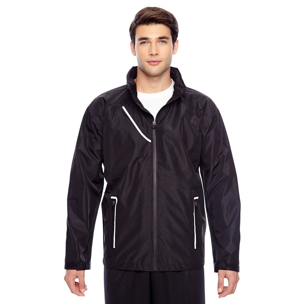 One-hundred percent dyed-to-match micro mesh lining throughout the interior of the Team 365 Men's Black Dominator Waterproof Jacket ensures you remain comfortable working outdoors the entire day. The highly breathable jacket includes a two-layer waterproof shell comprised of 100% rip and tear resistant polyester. Roll away the hood for quick access whenever the temperature suddenly dips. Black contrast side panels and reflective tape on the front chest pockets highlight the fashionable features of the all-purpose waterproof jacket. Attach your corporate logo to spread the word about your company. Logoed corporate apparel offers companies a cost effective way to promote products and services.Corresponding Women's Style: Team 365 Women's Black Dominator Waterproof Jacket