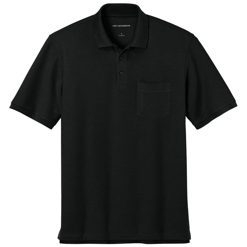Port Authority Men's Deep Black Tall Wearever Signature Pique Pocket Polo