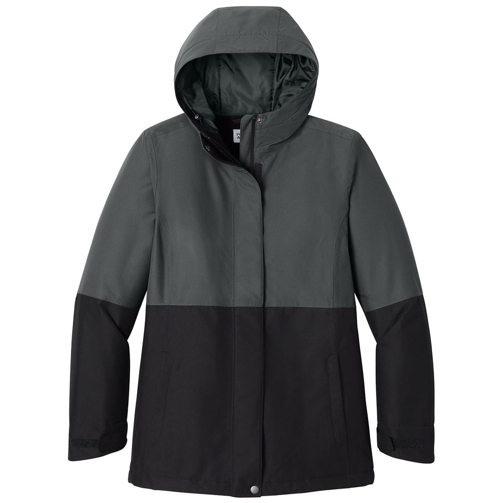 Port Authority Women's Grey Steel/Deep Black Insulated Heavy Ripstop Jacket