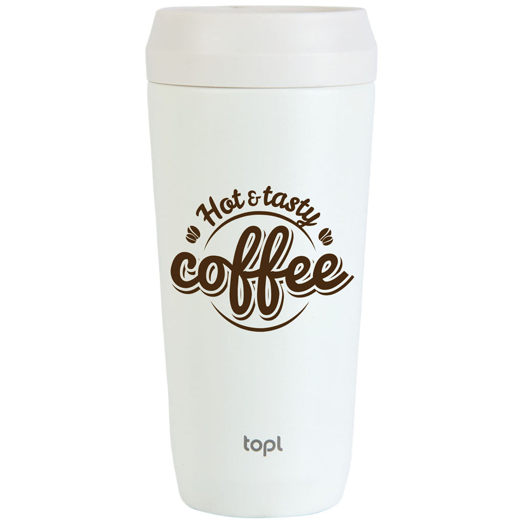 The TOPL White 16 oz. Double Wall, Recycled Stainless Steel 360° Tumbler offers mid-size corporate drinkware with eco-conscious appeal. Vacuum insulation keeps beverages fresh, and the 360° lid supports effortless sipping. Great for offices, health programs, or branded retail initiatives focused on sustainable, everyday use.