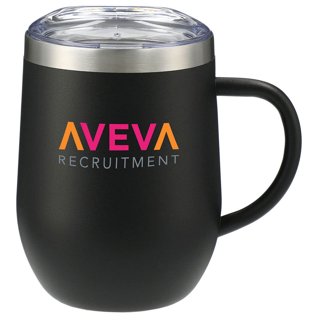 Taking your morning coffee with you into the boardroom or office looks even better when you have the Leed's Black Brew Copper Vacuum Insulated Mug 12oz. Available in a variety of classic color options, this handled mug will make a spread the word about your brand when your company's custom logo is added to the sweat-resistant exterior.The minimum order for this product is 48 pieces.