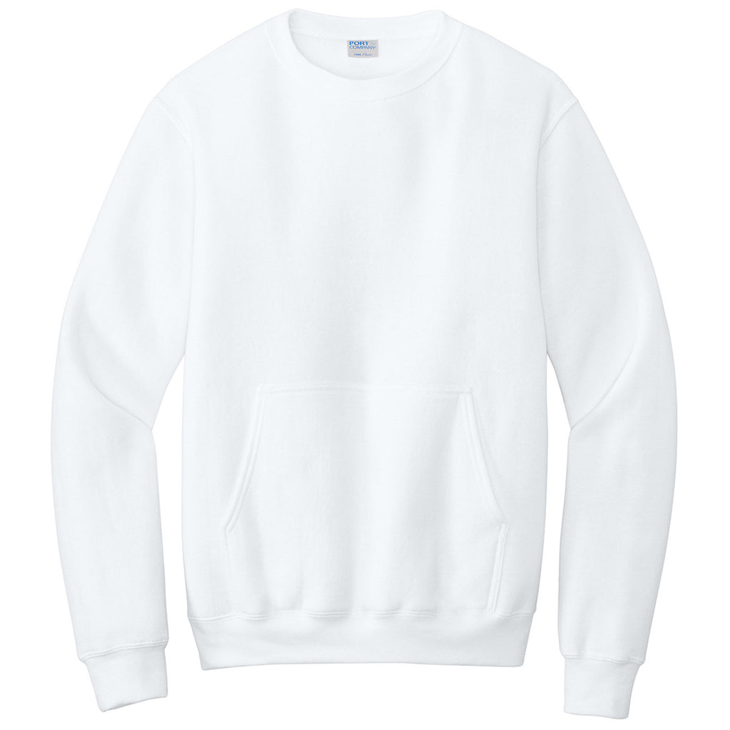 Port & Company Unisex White Core Fleece Crewneck Pocket Sweatshirt