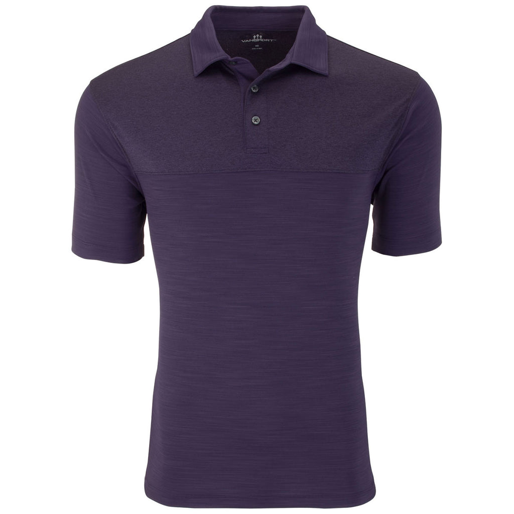 A great custom polo is a must have and the Vansport Men's Deep Purple Pro Horizon Polo will not disappoint. The mix of tonal textures offer visual interest to this sporty polo that is made to perform. Whether you need a custom look to play in a golf tournament or something that can serve as corporate apparel when worn with a sport coat. Add a company logo to use this as employee apparel with moisture wicking and UV properties that keeps everyone looking their best as they work their hardest.Corresponding Women's Style: Vansport Women's Deep Purple Pro Horizon Polo