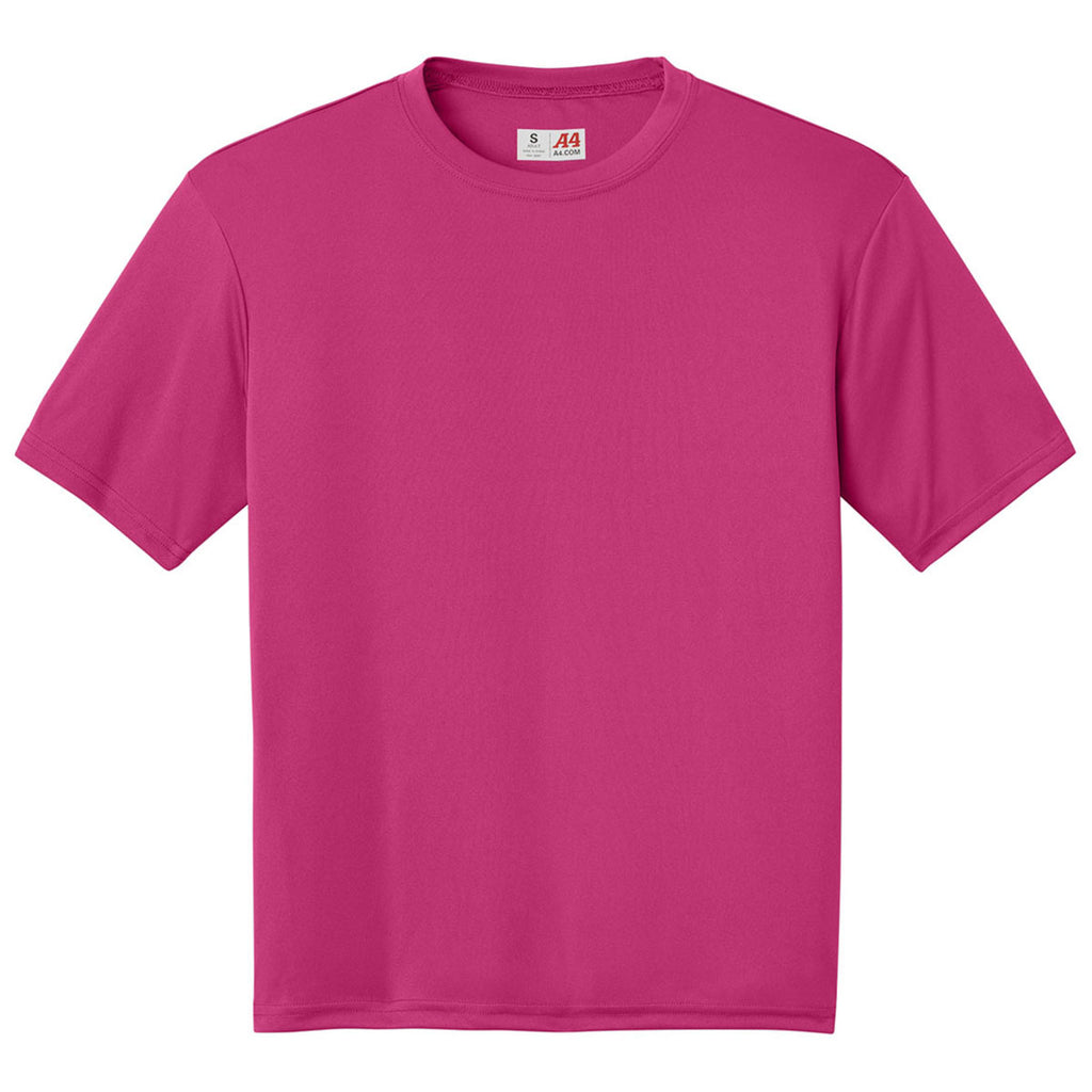 Keep cool with the A4 Men's Fuchsia Cooling Performance Short Sleeve Tee. Built with moisture-wicking fabric, this tee is designed for workouts, sports, or active jobs. Customize it with your logo to create branded apparel that's functional and comfortable. Its lightweight design makes it a reliable choice for corporate promotions or team uniforms.
