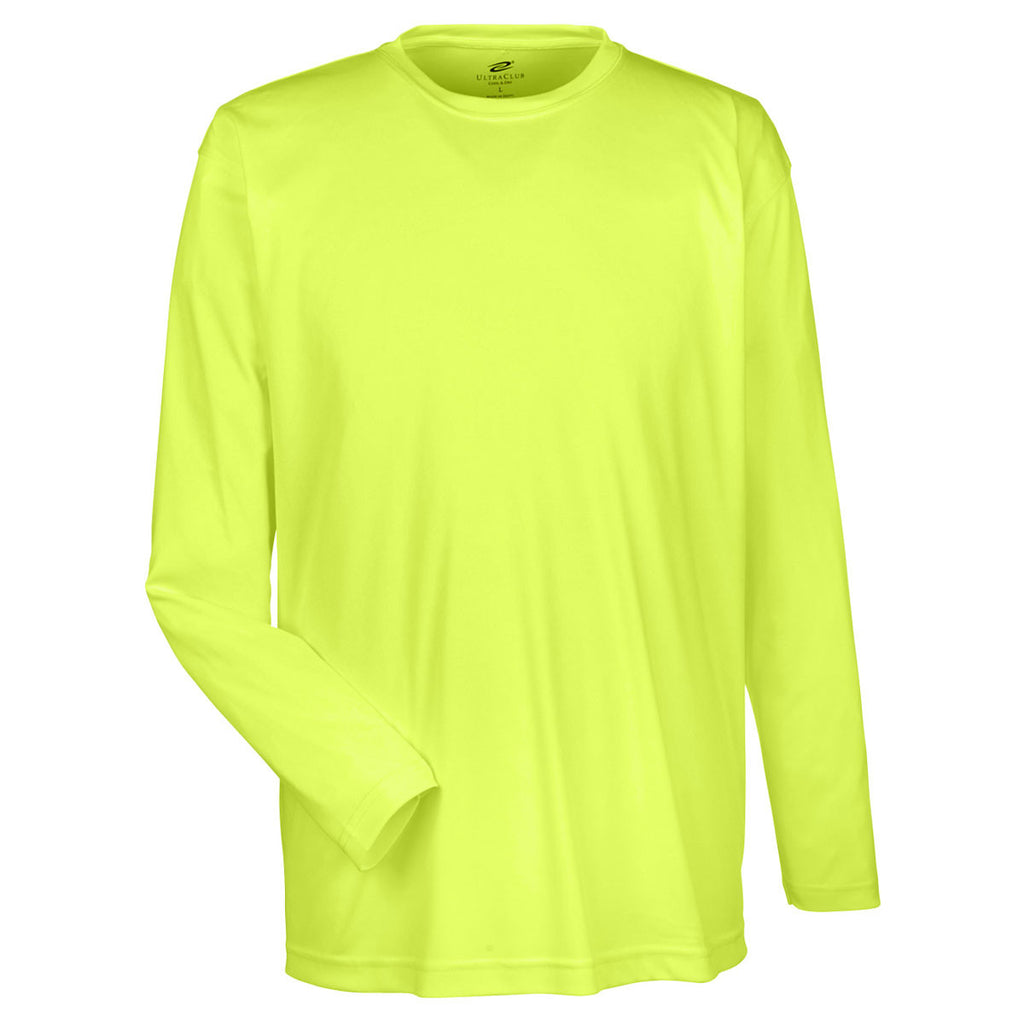 UltraClub Men's Bright Yellow Cool & Dry Sport Long-Sleeve Performance Interlock T-Shirt