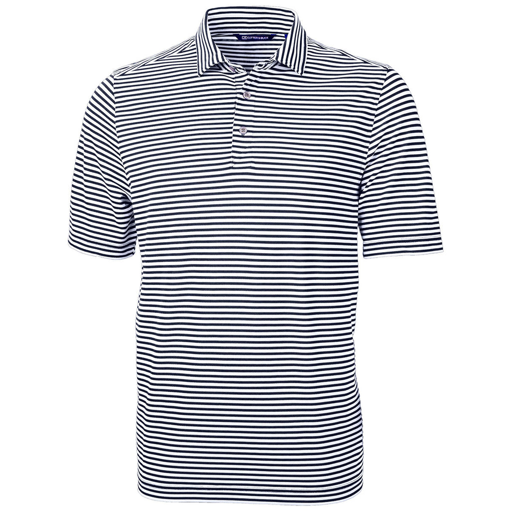 Cutter & Buck Men's Navy Blue Virtue Eco Pique Stripped Recycled Tall Polo