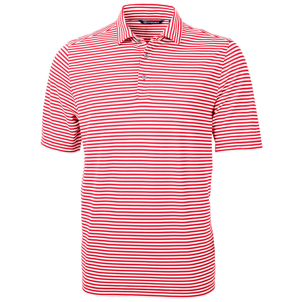 Cutter & Buck Men's Red Virtue Eco Pique Stripped Recycled Tall Polo