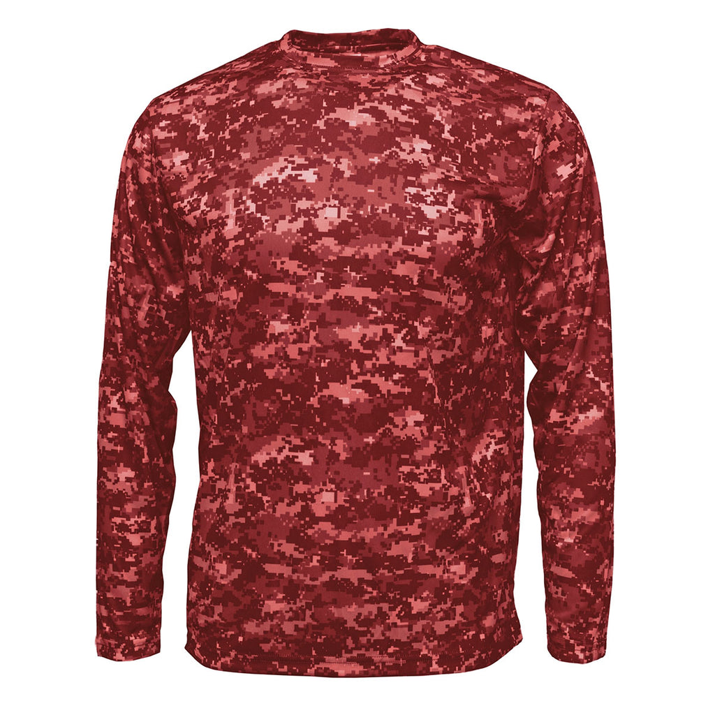 BAW Men's Maroon Xtreme Tek Digital Camo Long Sleeve Shirt