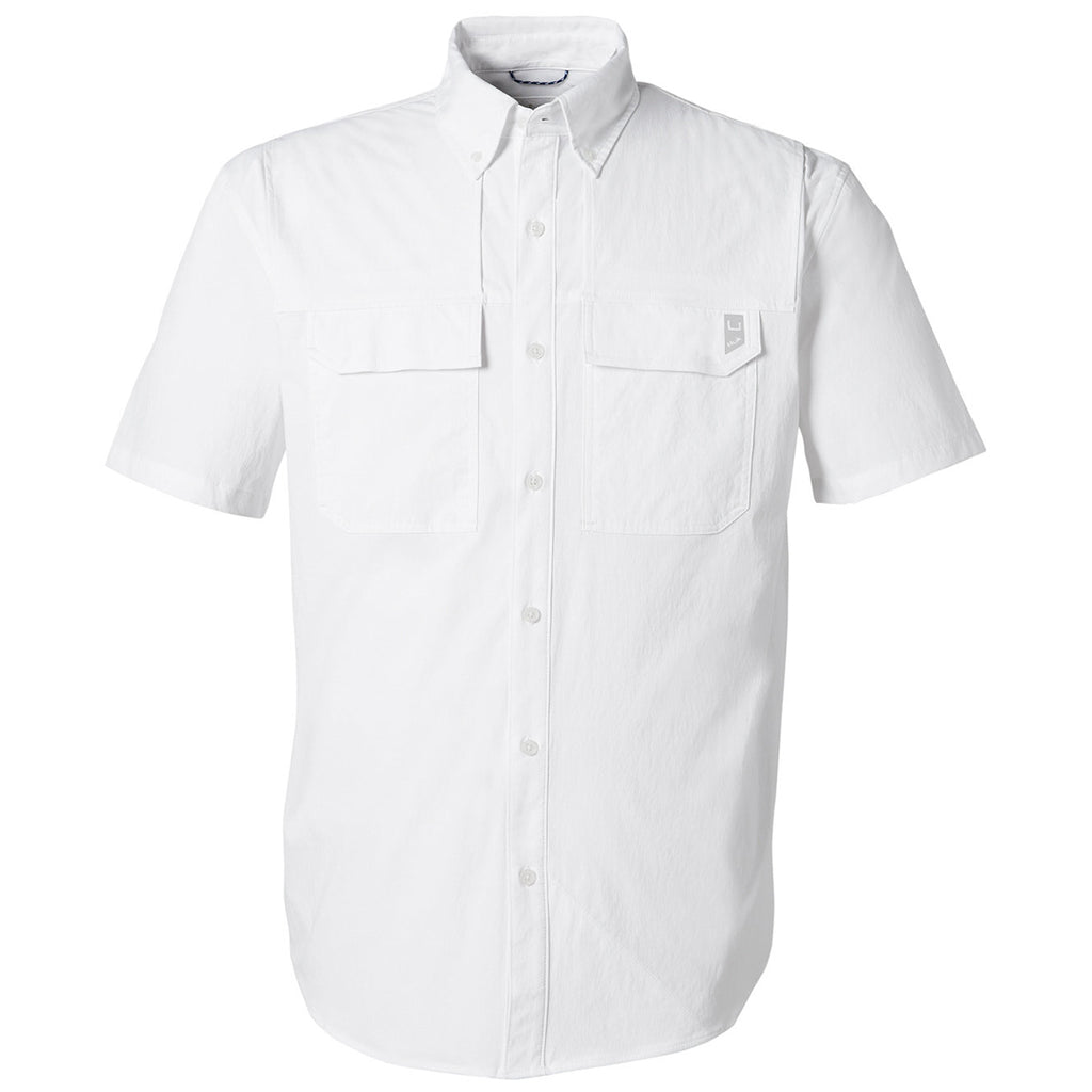 HUK Men's White Creekbed Short Sleeve Shirt