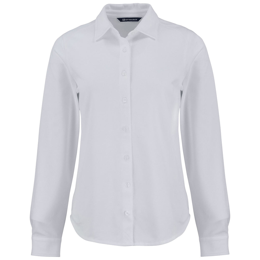 Cutter & Buck Women's White Advantage Tri-Blend Eco Soft Pique Long Sleeve Knitted Button Down