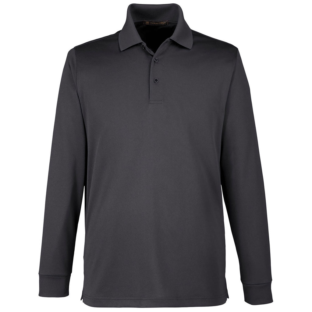 Harriton Men's Dark Charcoal Tall Advantage Snag Protection Plus Long Sleeve Polo