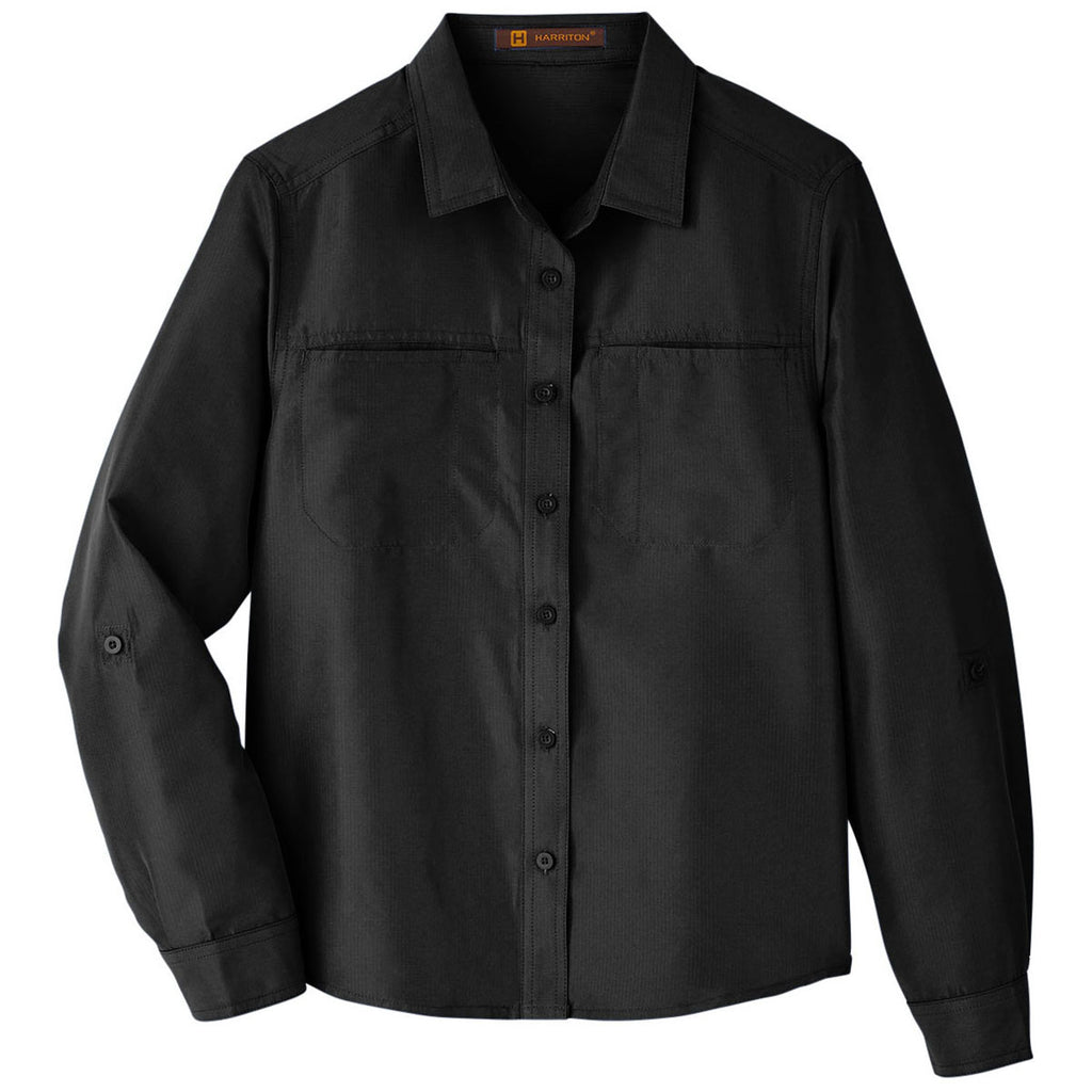 Harriton Women's Black Key West Long-Sleeve Performance Staff Shirt