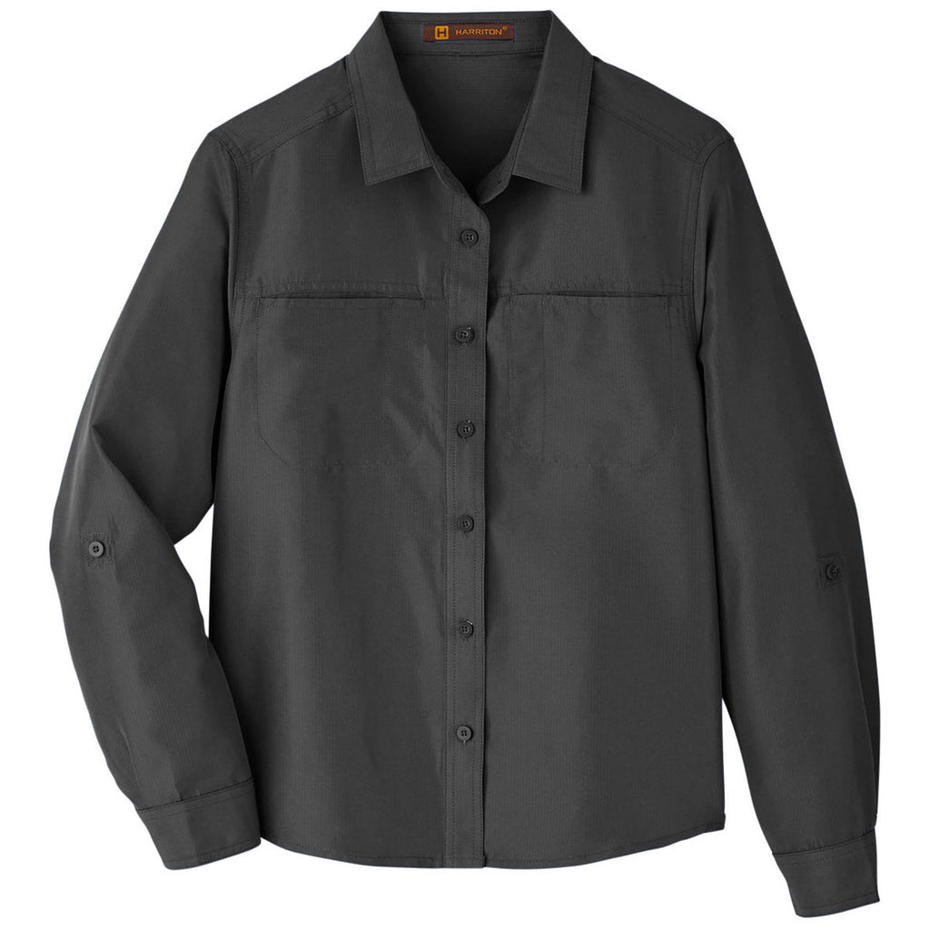 Harriton Women's Dark Charcoal Key West Long-Sleeve Performance Staff Shirt