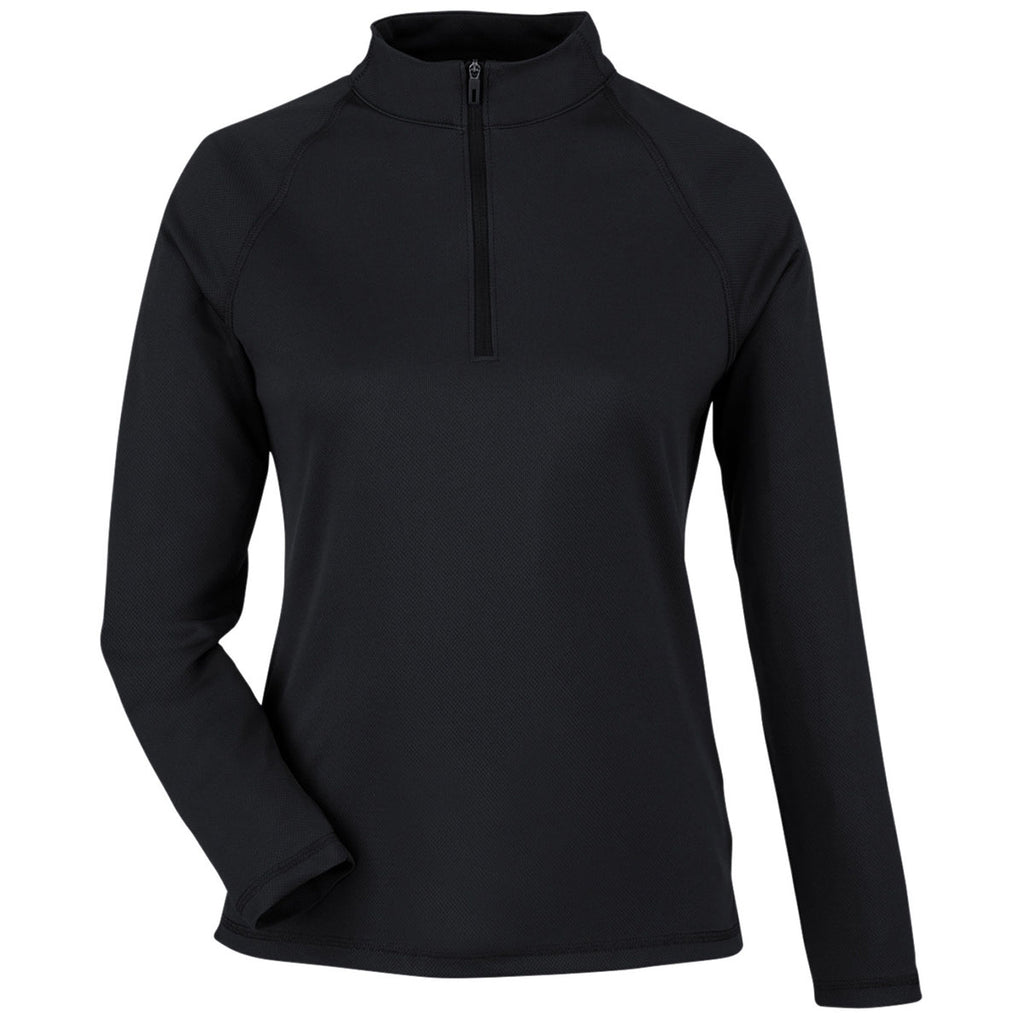 North End Women's Black Revive Coolcore Quarter Zip with corporate embroidery will turn heads. This sleek, professional quarter zip is made from recycled materials to be eco-friendly and sustainable. Created with moisture-wicking, thermal regulation, and UV protection, this quarter-zip is great for the commute, the office, and heading home.Highlights
