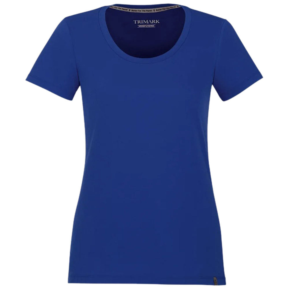 Enjoy a custom look with the Elevate Women's New Royal Somoto Eco Short Sleeve Tee. The versatile tee is comfort, easy to wear, and eco-friendly with recycled materials. Great to wear alone in warmer weather or layer with a hoody or jacket, the short sleeve tee can sport your embroidery with ease and style. Place an order today.Highlights
