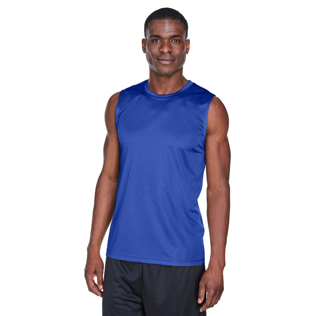 Team 365 Men's Sport Royal Zone Performance Muscle T-Shirt is great for those that need to be outdoors in warmer weather. Available with custom screen print to showcase your company design, the muscle shirt would make comfortable and functional employee apparel for those who do lawn care, serve outdoors, or even those who lifeguard. With numerous colors to choose from the performance muscle tee offers moisture wicking and UV protection for those overly warm days spent focused on work. The 100% polyester fabric would even make this an ideal choice for trade shows and events. Get your company noticed with a customized shirt, design yours today.Corresponding Women's Style: Team 365 Women's Sport Royal Zone Performance Racerback Tank