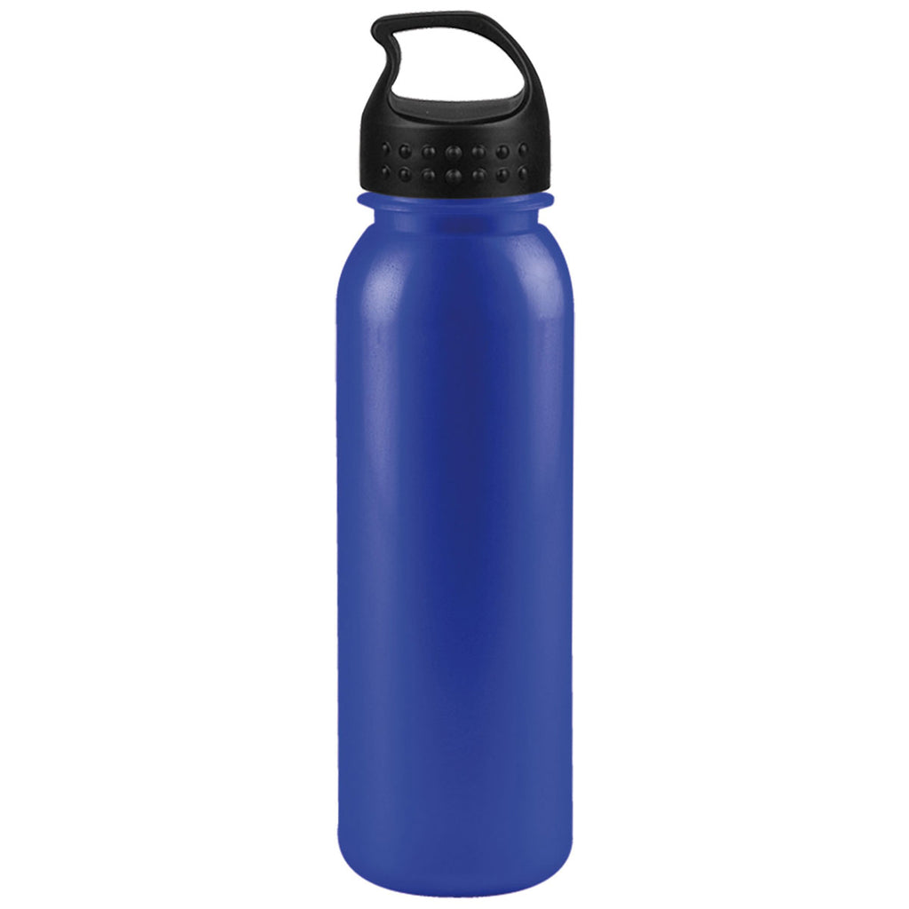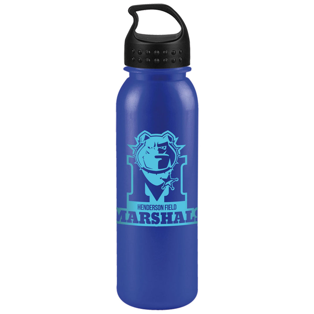 Choose a fun custom logo for the Good Value Metal Blue Terrain Metalike Bottle - 24 oz. for an easy way to carry and enjoy your drink as you go about your day. The screw on top for this large bottle with a place to add a carabiner clip for easy attachment to a bag means you can take this bottle running, hiking, or biking with ease. Add a company logo to give this as a welcome gift to a new employee, friends, family, or clients. The metal like outer coating creates a smooth surface for the design and helps keep drinks cool for longer. Place an order right away because these will go quickly.