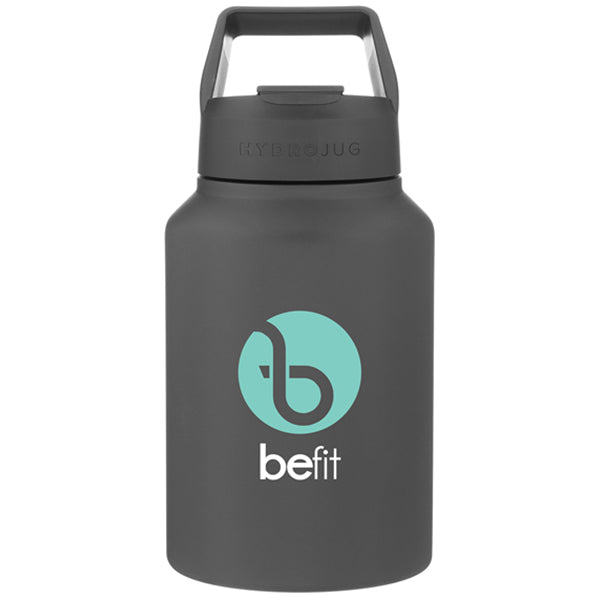 HydroJug Black 64oz Stainless with a custom logo is a must-have for the person on the go. Whether you are out hiking, camping, or just too busy to slow down, this water jug is a true necessity. The copper vacuum insulation, dual-purpose lid, flip-out spout, and inner straw keep your drink of choice easily accessible.Highlights