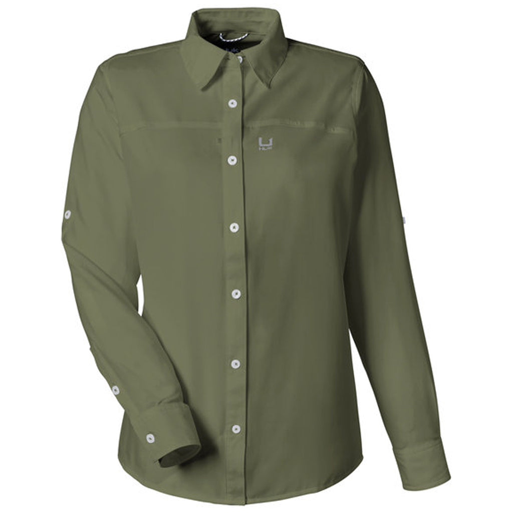 Choose embroidery for the HUK Women's Moss Tide Point Long Sleeve Shirt for a look that is both comfortable and professional. The polyester top has button roll-up sleeves for warmer days and a laser-perforated back for comfort. Great for a professional setting, going out, or wearing around the home.Corresponding Men's Style: HUK Men's Moss Tide Point Long Sleeve Shirt