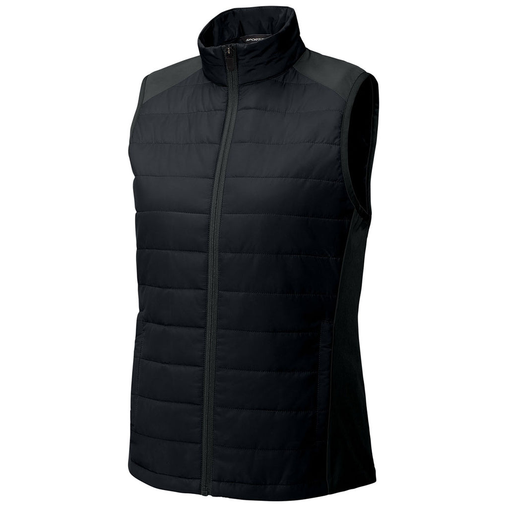 Corporate style blends with comfort in the Sport-Tek Women's Black Teknical Hybrid Vest. Lightweight insulation offers just the right amount of warmth, while stretch panels provide flexibility. Add a custom logo to create a versatile branded vest ideal for outdoor events, corporate uniforms, or seasonal gifts that reflect professionalism and practicality.Corresponding Men's Style: Sport-Tek Men's Black Teknical Hybrid Vest