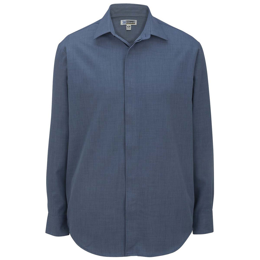 Create a custom updated look with the Edwards Men's Riviera Blue Batiste Cafe Shirt in a range of classic colors. Offering a modern fit in an understated style, this 100% polyester shirt is perfect for those who need employee apparel that demonstrates professionalism. Add a corporate embroidery to the long sleeve button up with chest pocket and narrow collar with hidden placket. Ideal for layering with a suit jacket as part of corporate uniforms the shirt is wrinkle resistant, offers soil release, and moisture wicking. Your custom logo will look beautiful on these shirts that offer the ability to be paired with jeans, slacks, or almost any type of attire you can imagine.Highlights