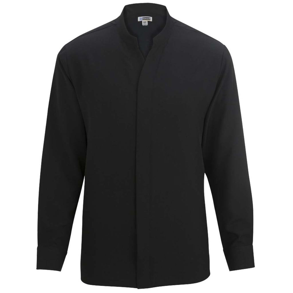 Create a custom, refined look with the Edwards Men's Black Stand-Up Collar Shirt in a wide range of colors. Made of 100% polyester this modern fitting shirt would make excellent hospitality apparel with the clean lines, open neckline and stand-up collar. Also ideal as employee apparel for those working as wait staff or in the kitchen as the shirts are Tuff-Tested with moisture wicking and soil release fabric. These rental ready shirts can display your company logo or embroidered corporate brand with pride. Easy to launder, these shirts will stand the test of time and repeated use.Highlights