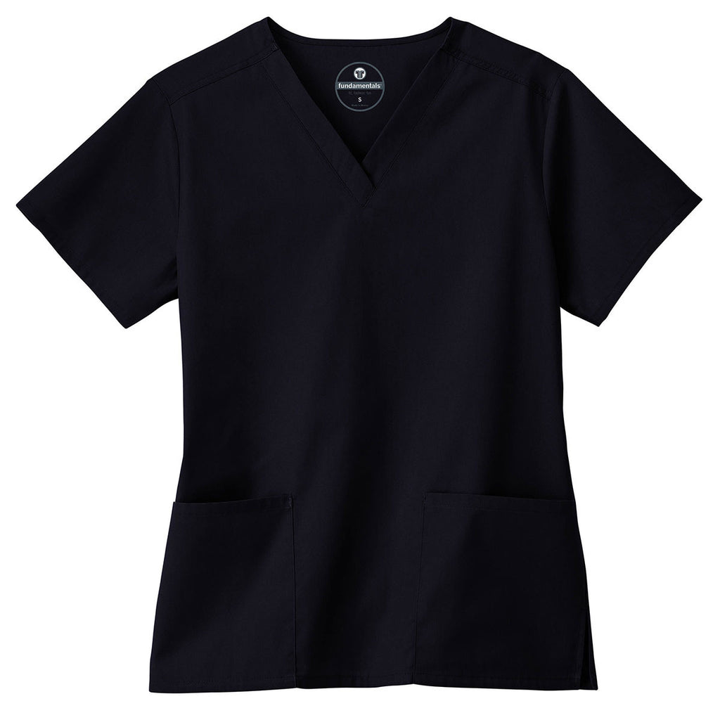 Treat yourself to the style and laid-back silhouette of White Swan Women's Black Fundamentals V-Neck Top featuring the comfort of everyday durable fabric. Crafted from polyester-cotton breathable blend with poplin making wrinkle-resistant. Soil-release finish helps to keep it clean and stain free. Relaxed fit makes this top easy to get on and off. Side slits and set in sleeves allow breathability and ease of movement. Two generous pockets carry essential gear. Customize this scrub top to make it uniquely yours with an embroidered logo or unique font for healthcare staff in your organization.Highlights