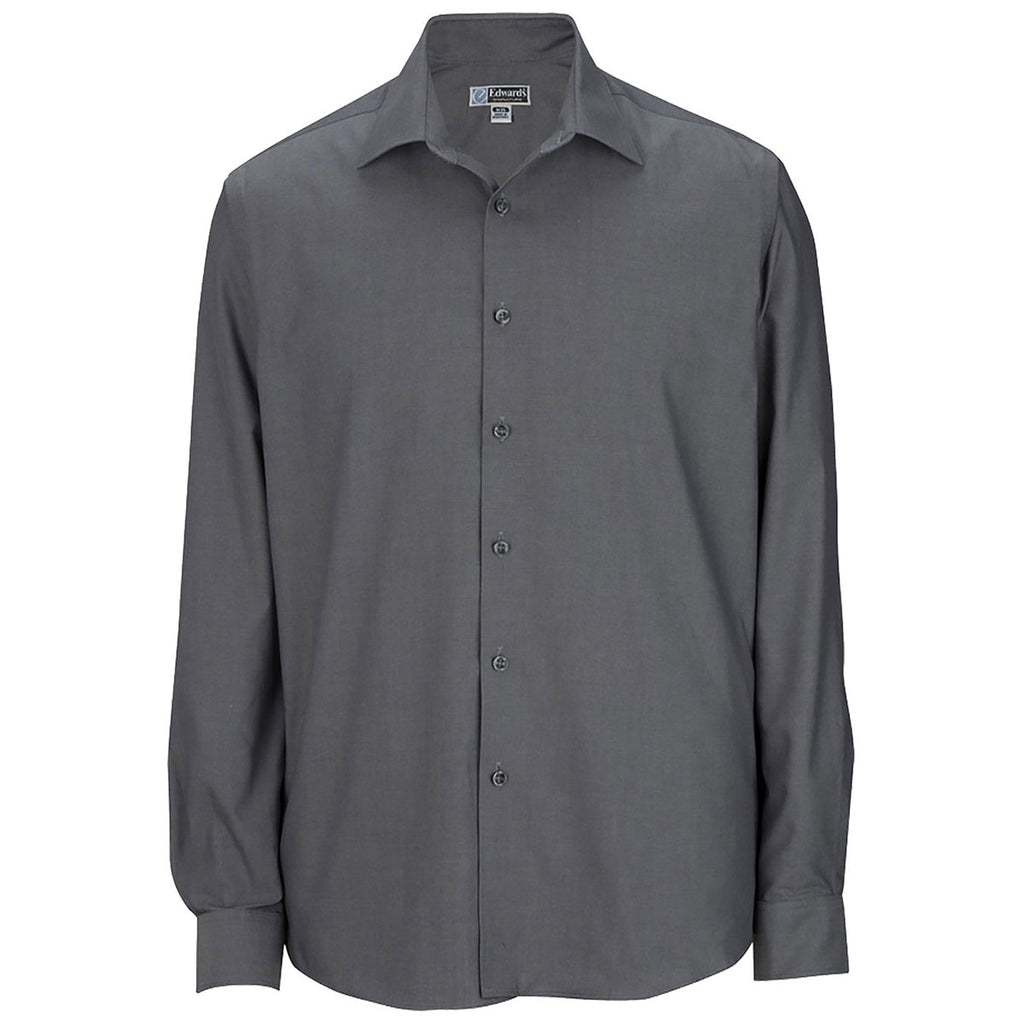 Design a company logo for the Edwards Men's Charcoal Pinpoint Oxford for a look that is professional and fashionable. Ideal for corporate apparel in and out of the office, this lightly striped long-sleeve shirt is a must have in a professional setting. Wear alone as a uniform or pair with a suit to create a custom look that will give clients faith you are doing your best. The wrinkle free fabric is lightweight with a tailored fit and point collar with sewn in stays. The French placket completes the look that can be dressed up or down as needed. Try a custom logo to add to your high-end logoed apparel line or give as a custom gift that will be a welcome addition to any wardrobe.Highlights
