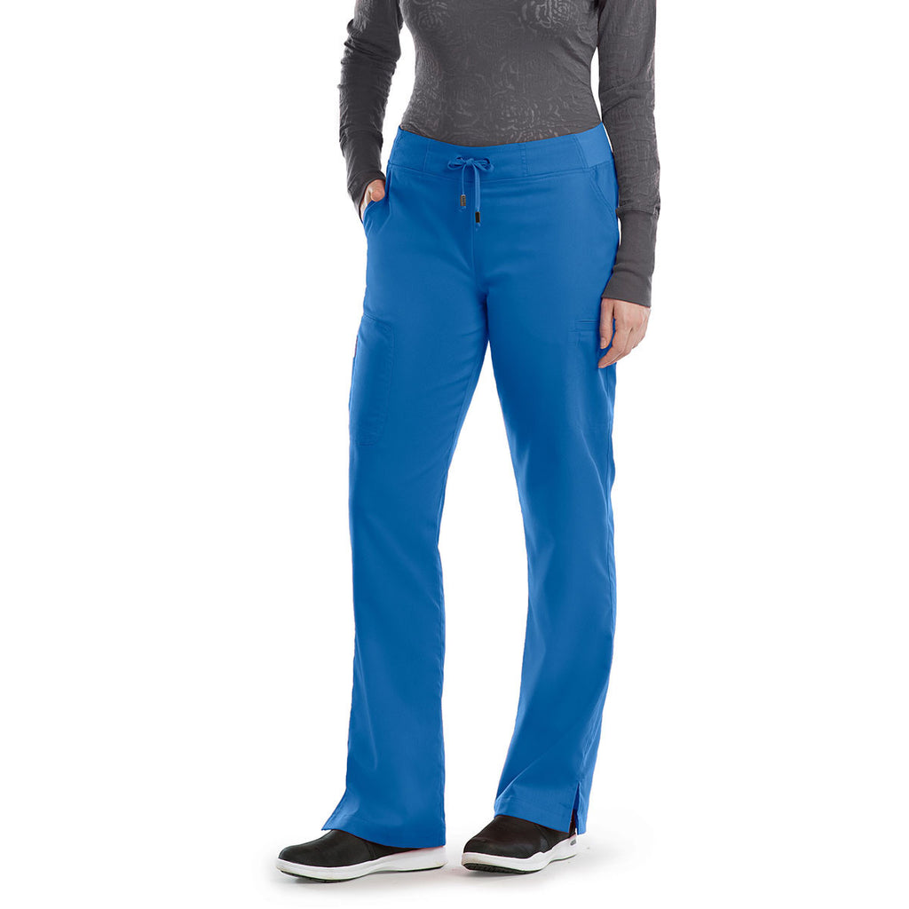 Cut from a soft polyester-rayon blend, Barco Grey's Anatomy Women's New Royal Modern Rise Straight Leg Pant feature a modern rise detailing and a relaxed straight-leg cut for an all day long easy fit. Six generous pockets keep on-the-go gear on-hand. Soft construction means they're ultra-comfortable for long shifts. An elastic waist with adjustable drawstring allows comfortable custom fit. Customize these scrub pants to make it uniquely yours with an embroidered logo or unique font for healthcare staff in your medical organization.Highlights