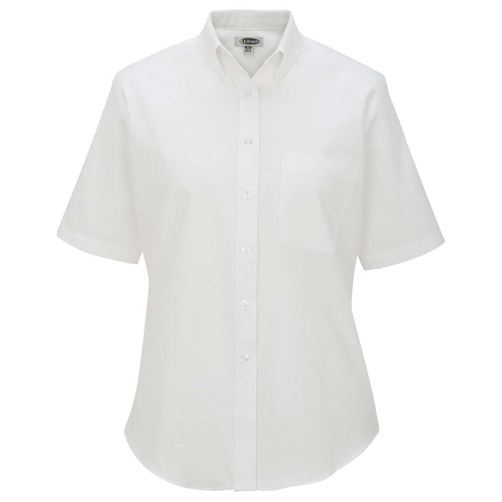 Nothing shows professionalism like a custom Oxford and Edwards Women's White Short Sleeve Oxford Shirt is top of the line. The cotton rich polyester blend is a blouse that can carry your company logo as a corporate uniform or every day wear in the office. The button-down collar, left chest pocket, and full cut pleat allows you to do all you need in atypical day. Create a professional embroidered look for employee apparel or simply order several with a custom logo to keep on hand when needed for big events. Fully machine washable, these button downs are wrinkle resistant and offer a soil release finish.Highlights
