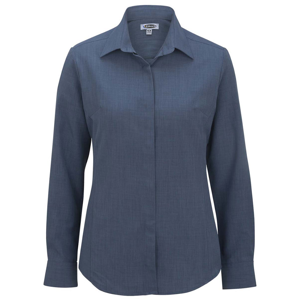Create a custom updated look with the Edwards Women's Riviera Blue Batiste Cafe Shirt in a range of classic colors. Offering a flattering fit in an understated style, this 100% polyester shirt is perfect for those who need employee apparel that demonstrates professionalism. Add a corporate embroidery to the long sleeve button up with two button adjustable cuff and narrow collar with hidden placket. Ideal for layering with a suit jacket as part of corporate uniforms the shirt is wrinkle resistant, offers soil release, and moisture wicking. Your custom logo will look beautiful on these shirts that offer the ability to be paired with jeans, slacks, or almost any type of attire you can imagine.Highlights