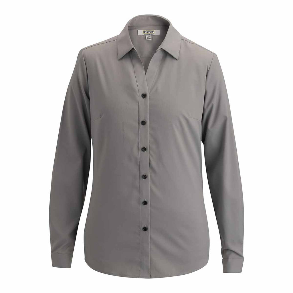 This tailored button down design is ready to make the women on your team at the top of their game. Crafted from an environmentally conscious fabric that wicks away moisture and manages odor, it's perfect for high-pressure situations. Add your company's custom logo for a classic, uniform look.Corresponding Men's Style:Edwards Men's Titanium Ultra Stretch Sustainable Dress Shirt
