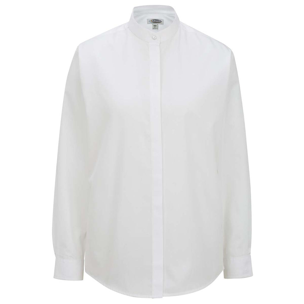 Let this custom shirt work as hard as you do. The Edwards Women's White Banded Collar Shirt is soft, colorful, and perfect to carry your custom logo in the embroidery of your choice. Ideal wear for restaurants, caterers, and coffee shops these embroidered shirts make for great employee apparel or even hospitality apparel. Add your company logo to make sure your employees are easily recognized and your brand showcased on these long sleeve shirts with adjustable cuffs that are easily machine washable. Choose your color and design to create a look that everyone will want to mimic.Highlights